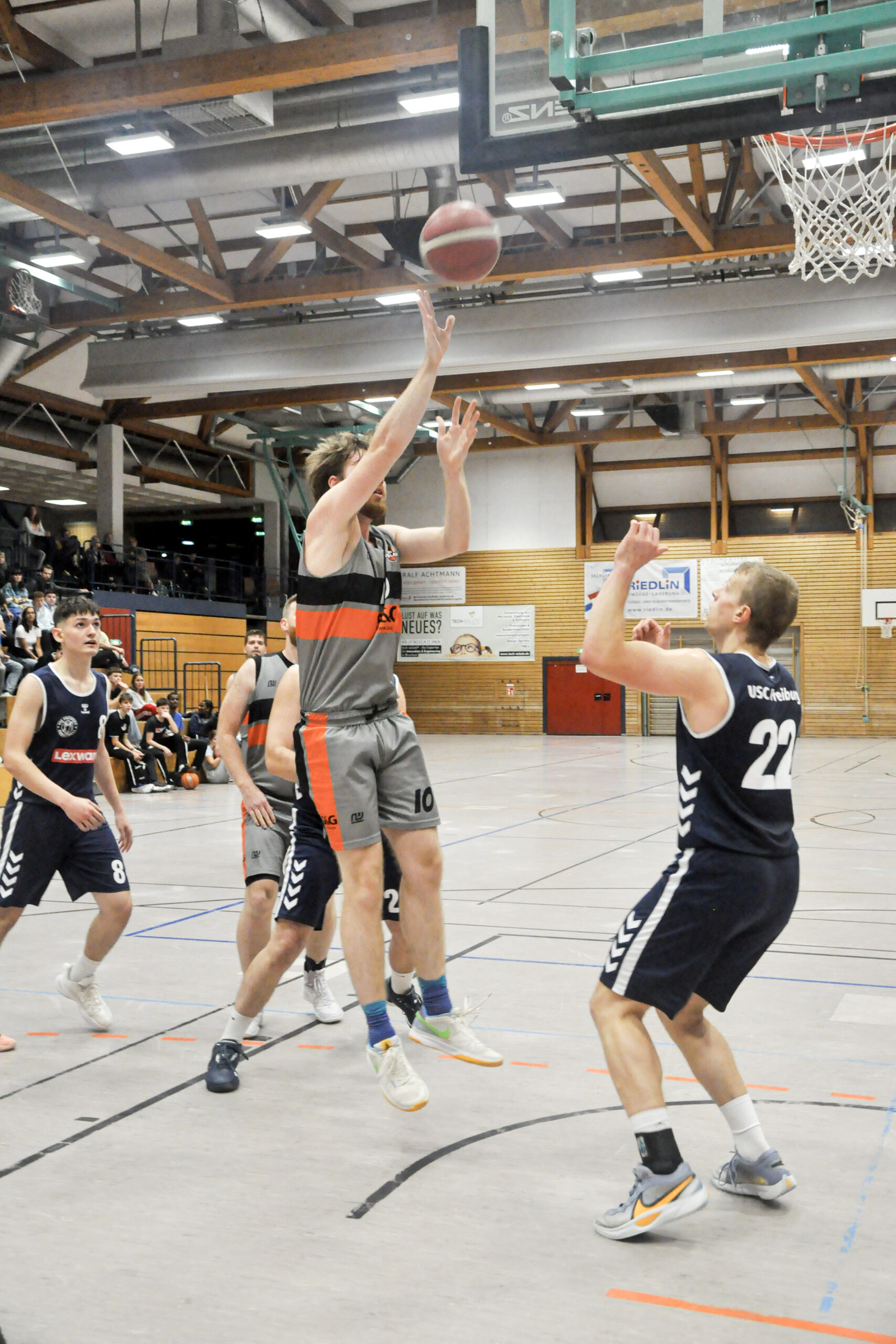 Am 9.11. lieferten sich unsere @tsdurlachbasketball M1⛹️‍♂️ ein tuffes Game gegen den @uscfreiburgbasketball 2. Trotz starkem Comeback💪 im 3. Viertel verloren unsere Männer knapp mit 59:64.